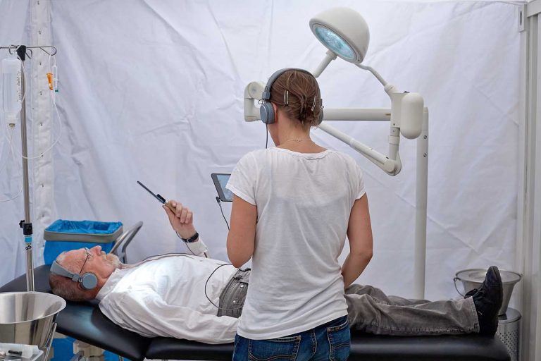 Como decimos, la guerra es el tema principal aquí, el detonante. La guerra y su principal herramienta, las armas. La pieza es como un videojuego (la gamificación llegó al teatro para quedarse, aunque todavía está por explotar al máximo) que se vive de forma individual, pero la relación con el resto de los espectadores es crucial. El público accede en grupos de 20 personas (hay cuatro pases diarios: 12h, 16h, 18h y 20h), y cada persona recibe unos auriculares y una tablet. Cada uno vivirá la experiencia de otras 10 personas a través de los vídeos previamente grabados que se ven en las tablets, biografías de distintos lugares del mundo relacionadas de una u otra forma con las guerras. Cada espectador vive la historia de ‘sus’ personajes, interactuando en un espacio laberíntico con los otros actores/ personajes, solapándose distintos planos de realidad y ficción en una vivencia absorbente que te saca completamente de tu vida durante más de una hora. El espectador es actor en la medida en la que, sin él, no hay pieza. Hay que ir consciente y dispuesto a ser parte de la obra.