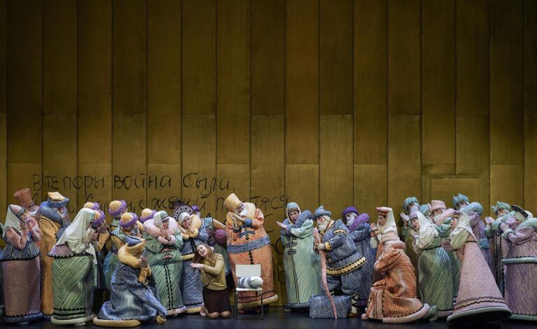 La sugerente escenografía, concebida también por Dmitri Tcherniakov, con el vestuario de Elena Zaytseva y la iluminación y vídeo de Gleb Filshtinsky, llevan al espectador a transitar por las dos historias que se entrelazan, intentando desentrañar los anhelos, sueños, temores, zozobras y quimeras de ese niño singular, como tantos niños singulares, a través de acuarelas mutantes, dibujos sinuosos y personajes desmesurados, con una inequívoca atmósfera eslava como la que reivindica la partitura.