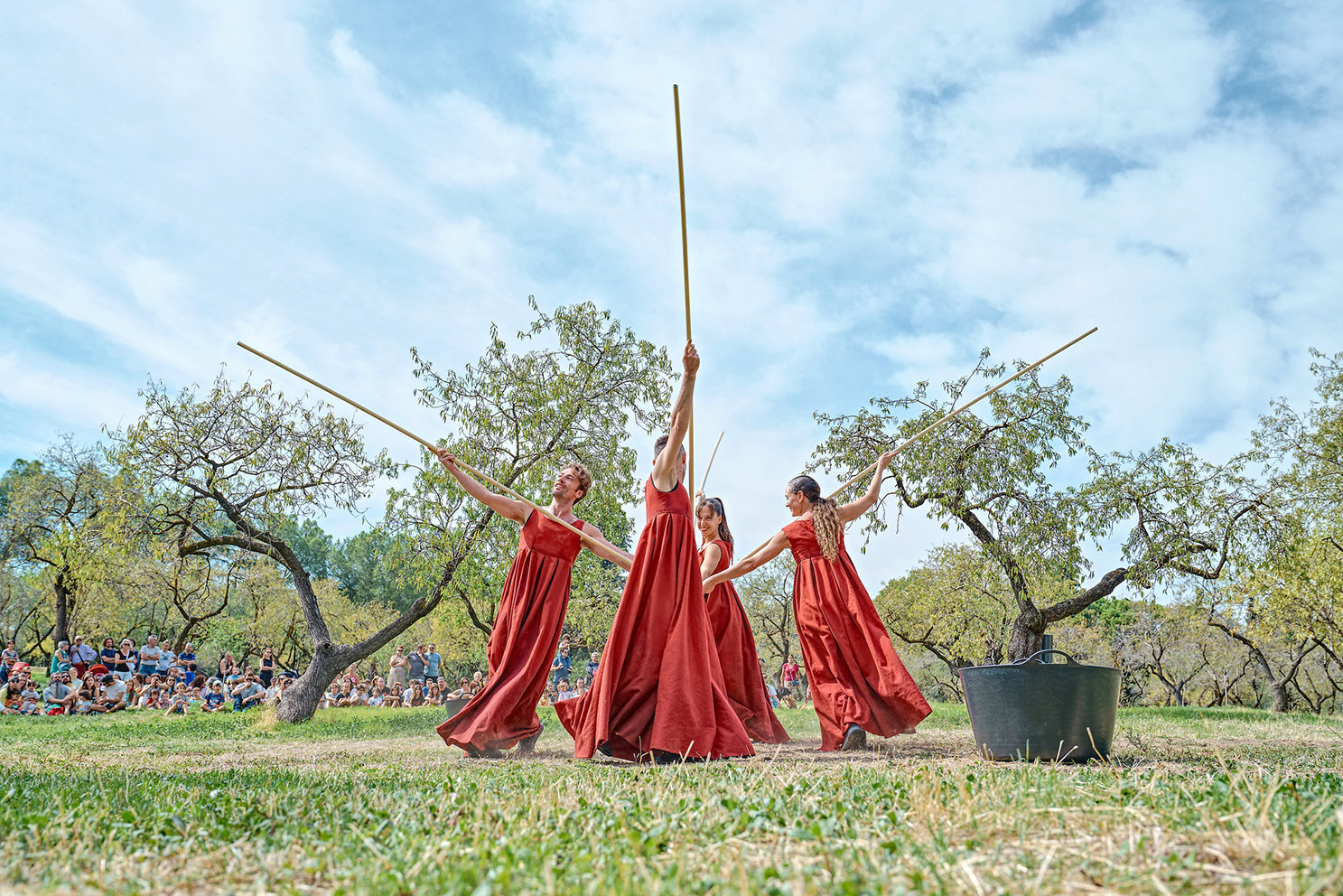 Ellos todos los años encargan a un coreógrafo o artista diferente para que haga la recolección de la almendra y luego la floración. Y en este caso me han llamado a mí porque les interesaba que lo realizara Aracaladanza. Yo encantado. Primero porque Espacio Abierto es un lugar que me gusta mucho como ya he dicho, sobre todo por el criterio que tiene de programación, que es exquisita, y poder participar en una programación así es un lujo. Y luego porque trabajar al aire libre es maravilloso, dirigiendo una propuesta que no solamente tiene que estar inspirado en las almendras y no salirse de la idea original, sino además mantener al público expectante en todo momento.