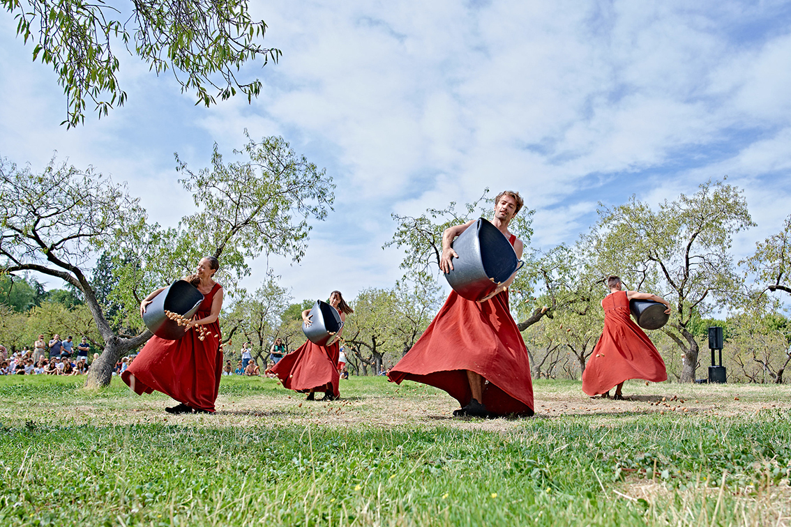 Ellos todos los años encargan a un coreógrafo o artista diferente para que haga la recolección de la almendra y luego la floración. Y en este caso me han llamado a mí porque les interesaba que lo realizara Aracaladanza. Yo encantado. Primero porque Espacio Abierto es un lugar que me gusta mucho como ya he dicho, sobre todo por el criterio que tiene de programación, que es exquisita, y poder participar en una programación así es un lujo. Y luego porque trabajar al aire libre es maravilloso, dirigiendo una propuesta que no solamente tiene que estar inspirado en las almendras y no salirse de la idea original, sino además mantener al público expectante en todo momento.
