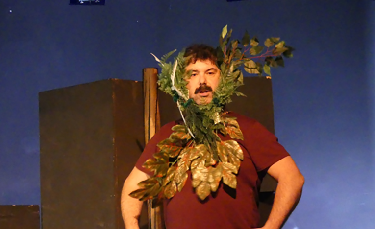 Pues viajemos al origen. En un flash-back de muy larga distancia, nuestra segunda escena muestra a un grupo humano de hace -como dicen ellos en la obra- cien veces cien años. Adoran a La Diosa, reunidos en una cueva. La celebrante está aún oculta. El hombre que vive con ella puede conducir ritos menores pero el cotarro lo llevan ellas. Ellas son sacerdotisas, magas, chamanas, jefas… Ellos, sólo fuerza que caza, fuerza que defiende… y fuerza en el sexo, sí. Pero sólo para divertirse. Ni siquiera saben que, cuando una mujer queda embarazada, ellos han tenido algo que ver en el asunto. Aún falta un poco para que descubran eso.