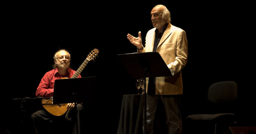 El acompañamiento de José Luís Merlín en la guitarra se sostiene, inevitablemente, por la improvisación a partir de temas propios y la inflexión y modulación de la voz del actor, emplea una técnica similar a la de los guitarristas flamencos pero apoyada por piezas propias de inconfundible raíz sudamericana.