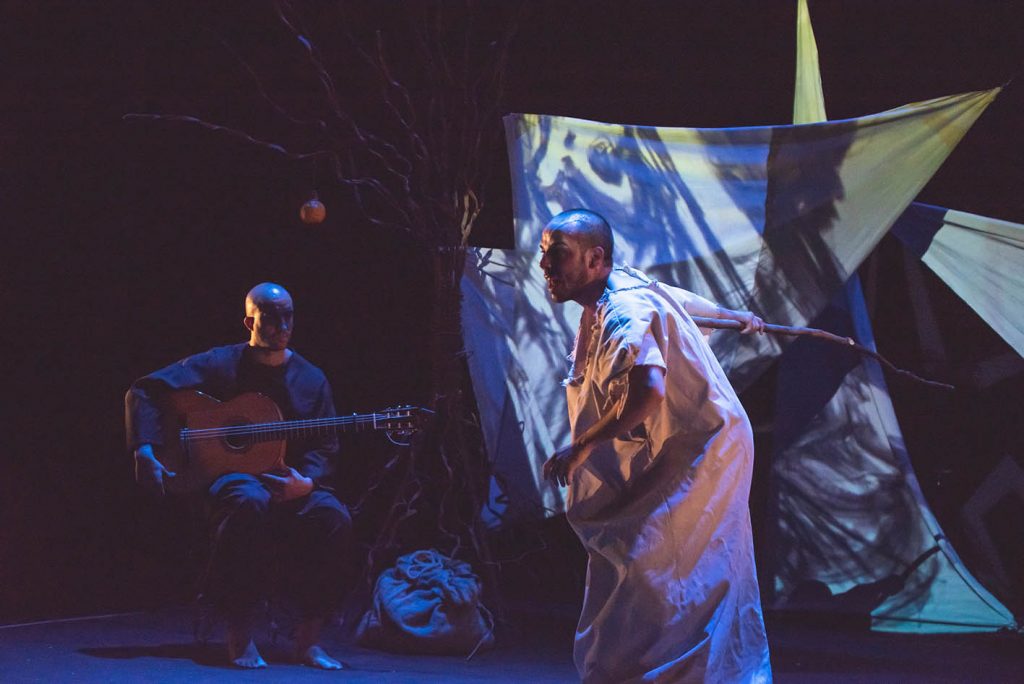 Esta versión de la obra original cervantina funde el teatro textual y físico con el flamenco en directo, símbolo del quejido y el grito de la locura del protagonista, y con un espacio sonoro que termina de construir las atmósferas, convirtiendo las composiciones musicales en verdaderos referentes con valor narrativo.