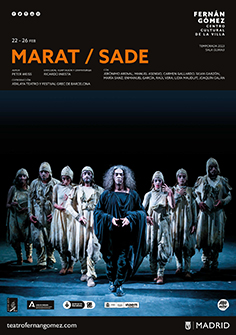 Este año 2023 Atalaya Teatro cumple 40 años de trayectoria profesional. Lo celebran con esta tragicomedia en dos actos: Persecución y muerte de Jean Paul Marat, representada por el grupo teatral del hospital de Chareton bajo la dirección del señor de Sade, y que es considerada una referencia indiscutible en el teatro contemporáneo. Escrita en 1963, su autor realizó diversas versiones, a medida que iba radicalizando sus posiciones políticas. Muy influenciada por teoría de Antonin Artaud, creador del teatro de la crueldad y de Bertolt Brech y su teatro épico.