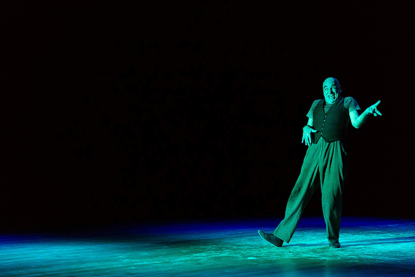 Este singular meta-personaje mediante el juego del texto y las estrategias del clown que enreda con sus conjeturas al espectador, nos introduce en las pantomimas, mediante un sugerente tratamiento poético, profundamente humanista y universal.