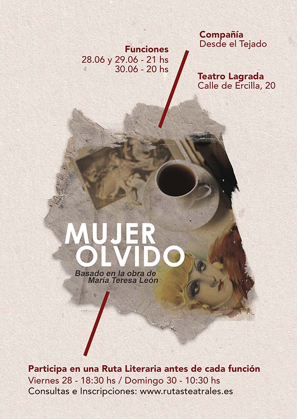 Mujer olvido es una obra de teatro que intenta radiografiar la autora María Teresa León a través de sus textos y a través del lenguaje escénico. Nos interesa acercar su obra a toda clase de públicos. Para ello, proponemos realizar una residencia artística para construir una obra de una hora de duración aproximadamente.