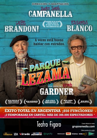 Parque Lezama, una obra de Herb Gardner, adaptada y dirigida por el aclamado director Juan José Campanella. Una comedia excelente protagonizada por Luis Brandoni y Eduardo Blanco. Una obra conmovedora que nos muestra el perfecto equilibrio entre la comedia y la emoción.