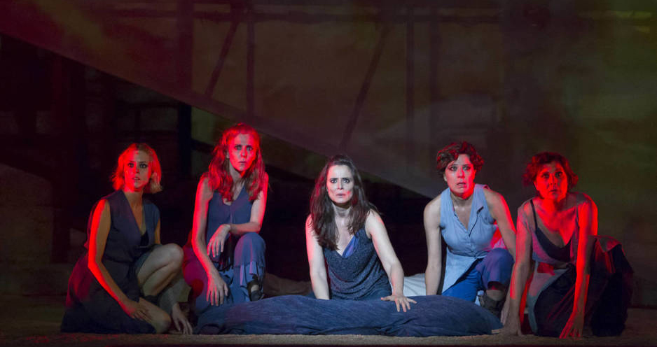 Montaje estrenado el pasado verano en el Festival de Mérida (donde se agotaron las entradas dos días) y que pasó también con el mismo éxito por el Grec de Barcelona. Ahora en Madrid la historia de las vencidas de los vencidos en la guerra de Troya, es decir, las mujeres de los troyanos que perecieron y que son doblemente víctimas. “Eurípides con los vencidos”, como dice Carmen Portaceli, la directora del montaje. “Después de la guerra de Troya (o cualquier guerra que podáis imaginar hoy, ayer, mañana), parece que ya está todo acabado, que la ‘gran acción’ ha terminado. Pero entonces, como el comercio cuando acaba el horario comercial, empieza la otra acción, la acción de la que no se habla, la que se hace ‘por derecho’ con los ciudadanos de ‘segunda’, la que no cuentan en las noticias: el reparto de las mujeres como esclavas sexuales, o esclavas de cualquier otro tipo”. Eurípides presentó este texto en las Grandes Dionisias del año 415 antes de Cristo. 2.400 años después, que se dice pronto, parece que nos habla desde antes de ayer. Es un tópico, pero es cierto que la Humanidad no ha cambiado tanto y que en la última guerra de Siria, que todavía se está librando, los escenarios y las acciones se ajustan como un guante. De hecho, las ruinas de Alepo forman parte en algún momento de la escengrafía que firma aquí Paco Azorín, presidida por una enorme T de Troya caída.