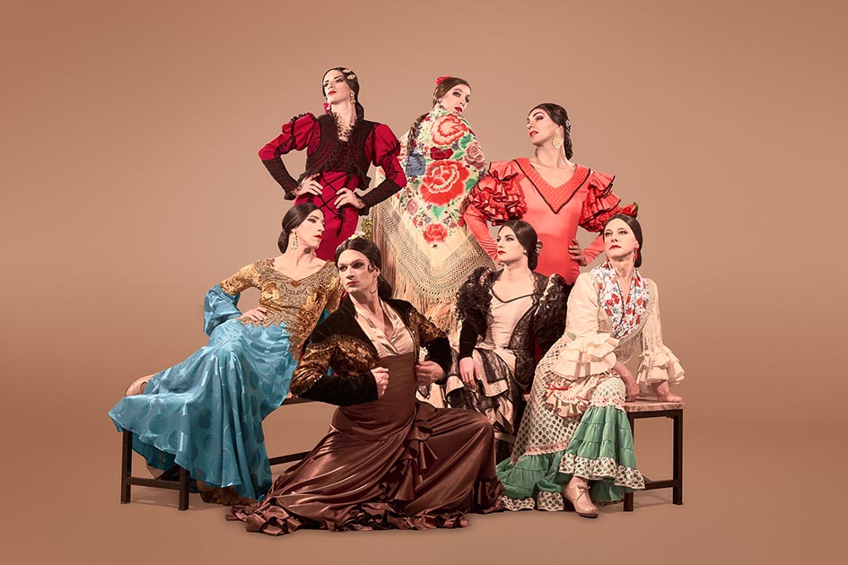 De Manuel Liñán (Granada, 1980) conocíamos su fiereza flamenca, su inteligencia y su capacidad de riesgo. Pero ha rebasado calificativos con esta coreografía que, con alguna razón, ha sido rápidamente comparada con el trabajo de Los Ballets Trockadero de Montecarlo. Es la comparación más fácil, por obvia, en tanto que Liñán y sus seis bailarines aparecen enfundados en trajes de flamencas, asumiendo roles femeninos sobre el escenario y abordando con pericia los distintos palos.