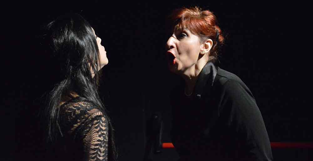 La palabra es la acción fundamental de la obra. Con un verbo barroco no gratuito, rico, ágil y abierto propone a las actrices ir encontrando las relaciones entre los miembros de la familia. ¿Qué desencadena la expulsión del hijo por el padre? ¿Cuál es el vínculo entre la mediana y el hermano? ¿Y entre el padre y la mediana? ¿Y entre la madre y el hijo?
