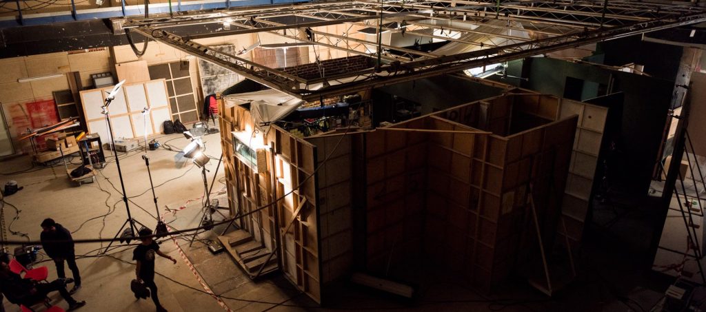 Almacenes de equipos de iluminación, sonido y cámaras. Talleres de vestuario, atrezzo y mobiliario. Taller de construcción de decorados.