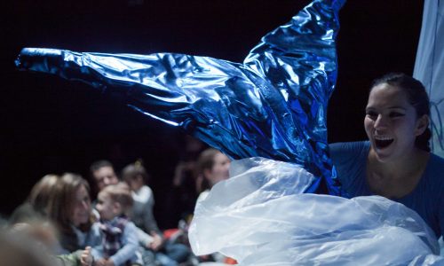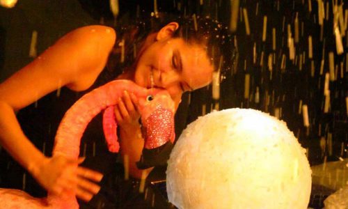 ‘Bú…’ es una obra de teatro pensada para padres y bebés, en la cual se juega y se comparte con el canto de las ballenas y el lenguaje de los delfines.