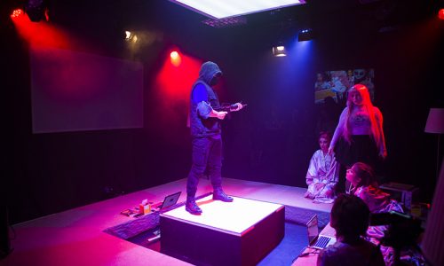 Más de 700.000 japoneses se han encerrado en sus hogares, y no saldrán en años, debido al colapso que la globalización produce en sus identidades. Ellos son los Hikikomoris. ¿Qué ocurre dentro de sus dormitorios? Noodles, videojuegos, extraterrestres, hentai. En esta pieza reflexionan sobre la idea de comunidad en su relación con la violencia y el capitalismo. Un concierto de trap que discute sobre el poder simbólico de la colonización espacial, el antropoceno y sobre uno de los grandes problemas del siglo XXI: la comunidad y la globalización. Put your hands up es la última partida del Hikikomori antes de su encierro final. Estáis todxs invitadxs.