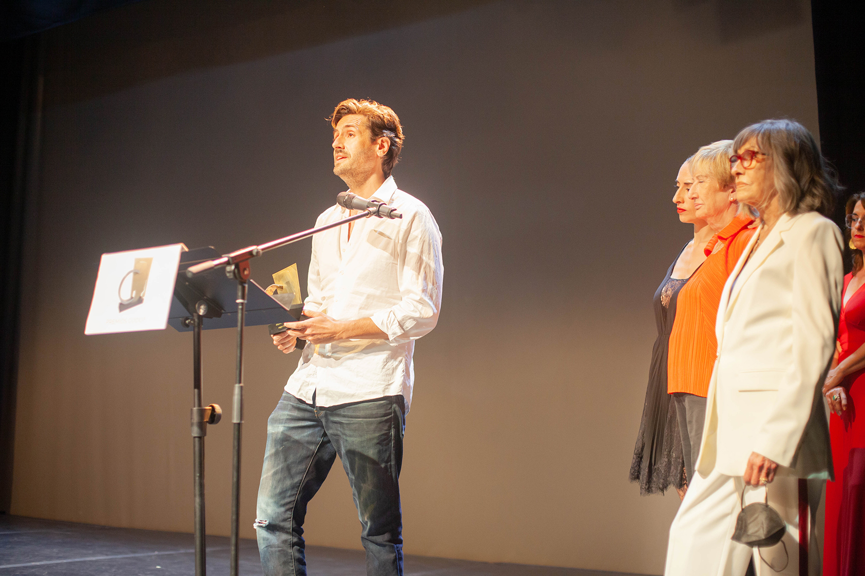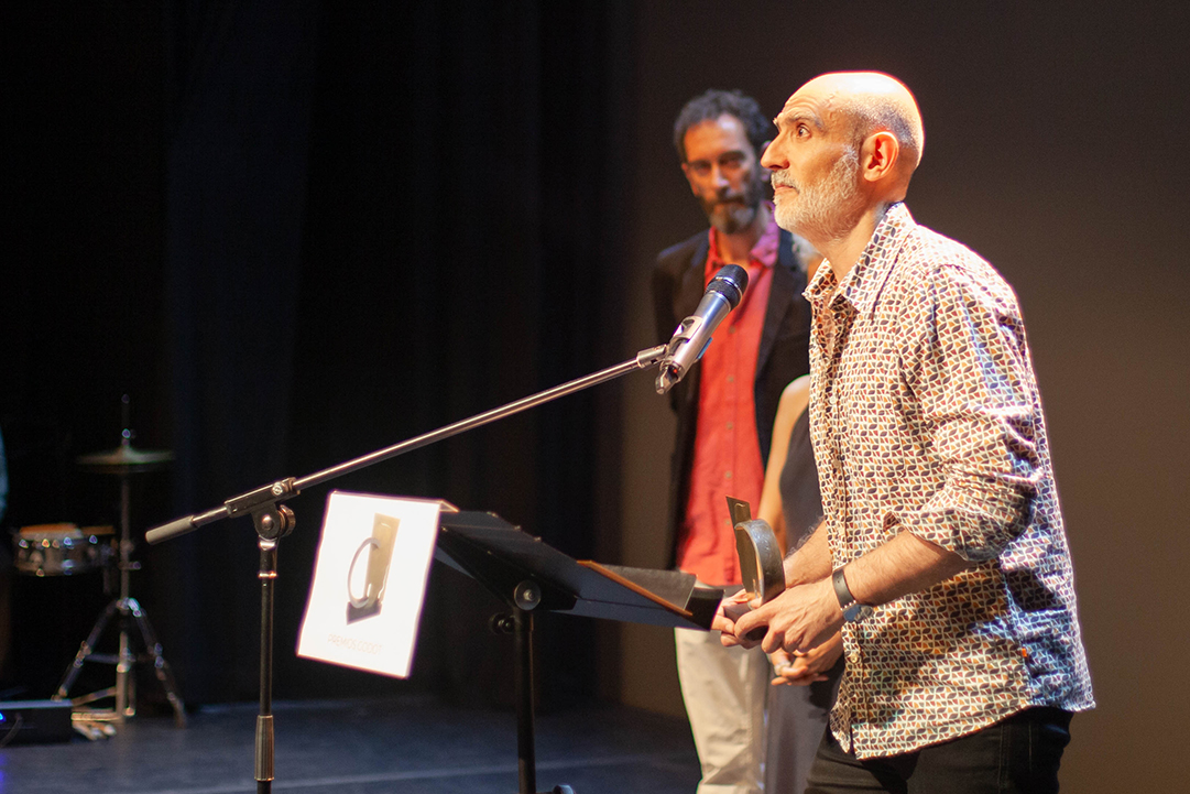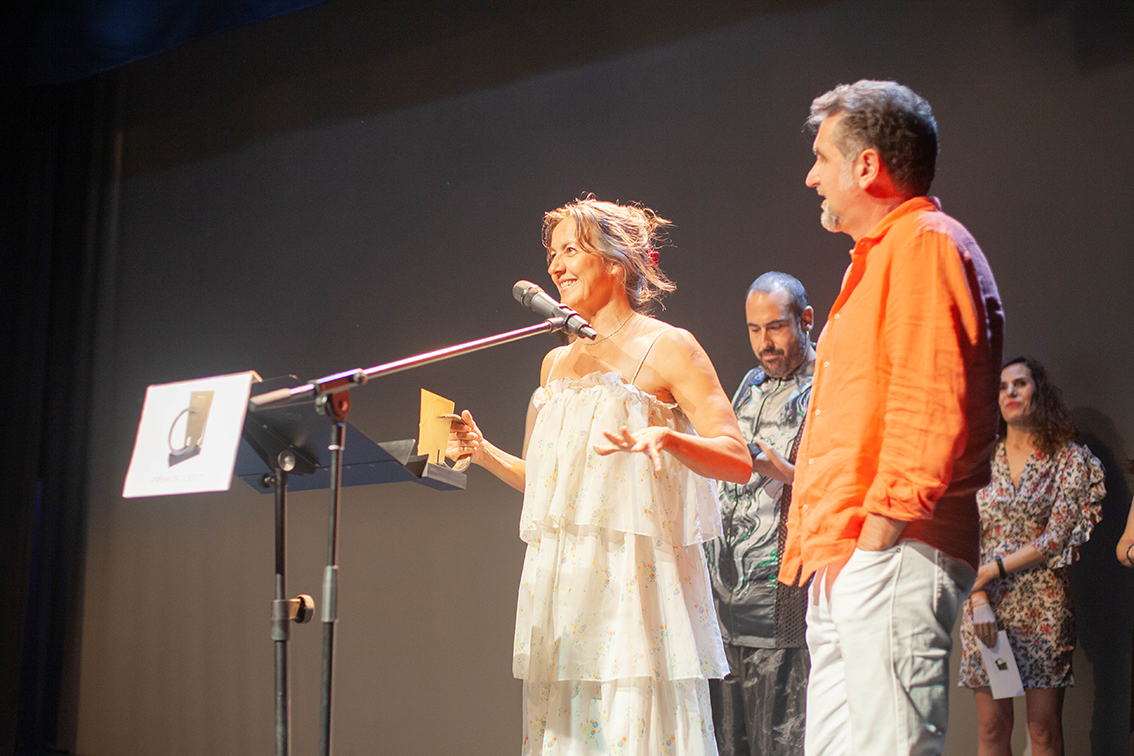 El director de la Revista Godot, José Antonio Alba y la directora de marketing de GDT Ediciones, Marisa Navajo, subieron al escenario para entregar el el Premio Godot Especial de Honor a Cristina Rota.