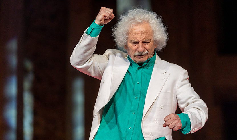 Rafael Álvarez, El Brujo, el juglar, el cómico, el improvisador, el gigante de la escena, capaz de llenarla con su sola presencia, quizás sea también un dios venido a las tablas, para ponernos en entredicho y sarcásticamente el éxtasis (positivo o negativo) en el que estamos viviendo en medio de tanta pandemia.