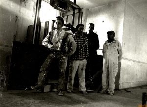 Fotografía de archivo. 1993. Reformas del local con el montacargas original de fondo